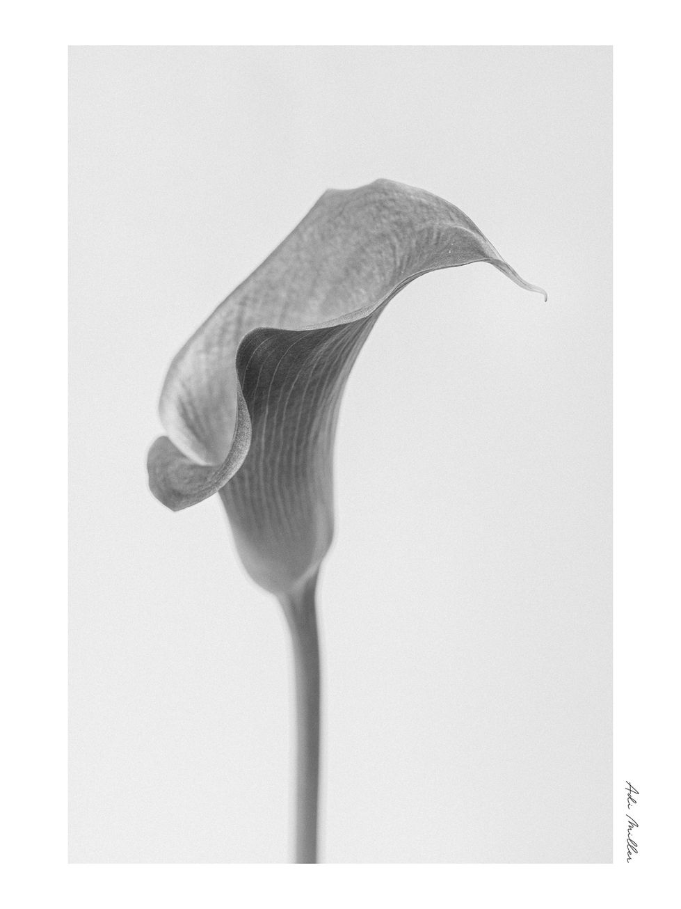 צילום אמנותי בוטני של פרח קאלה יחיד – אלגנטי, פיסולי ובעל עוצמה שקטה בפשטותו.